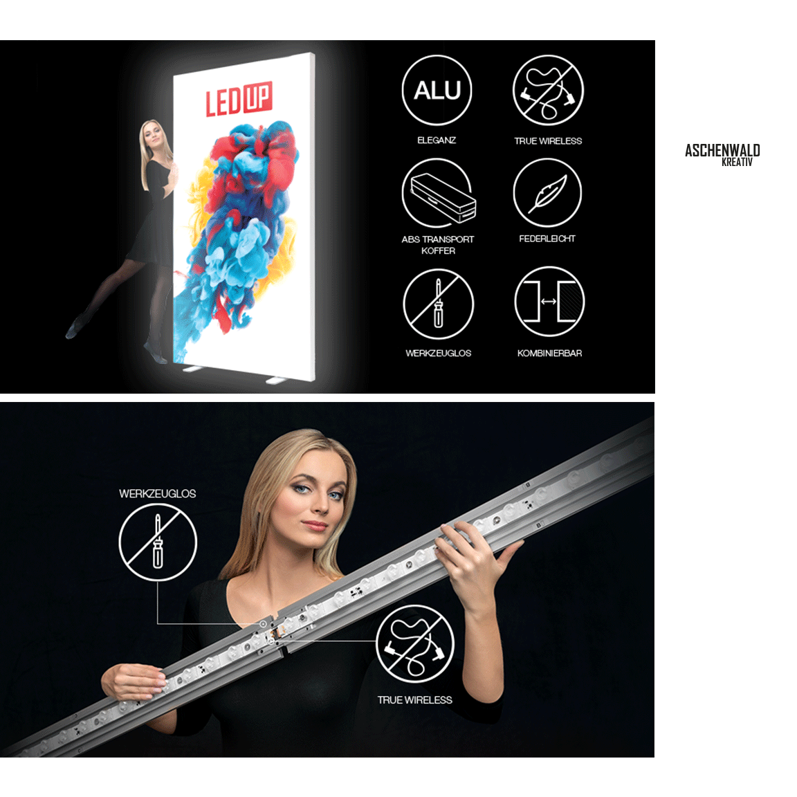 Mit LEDUP setzen Sie Ihre Marke mit einem revolutionären Display-System höchster Qualität und hochwertiger OSRAM LED Technik ins richtige Licht.