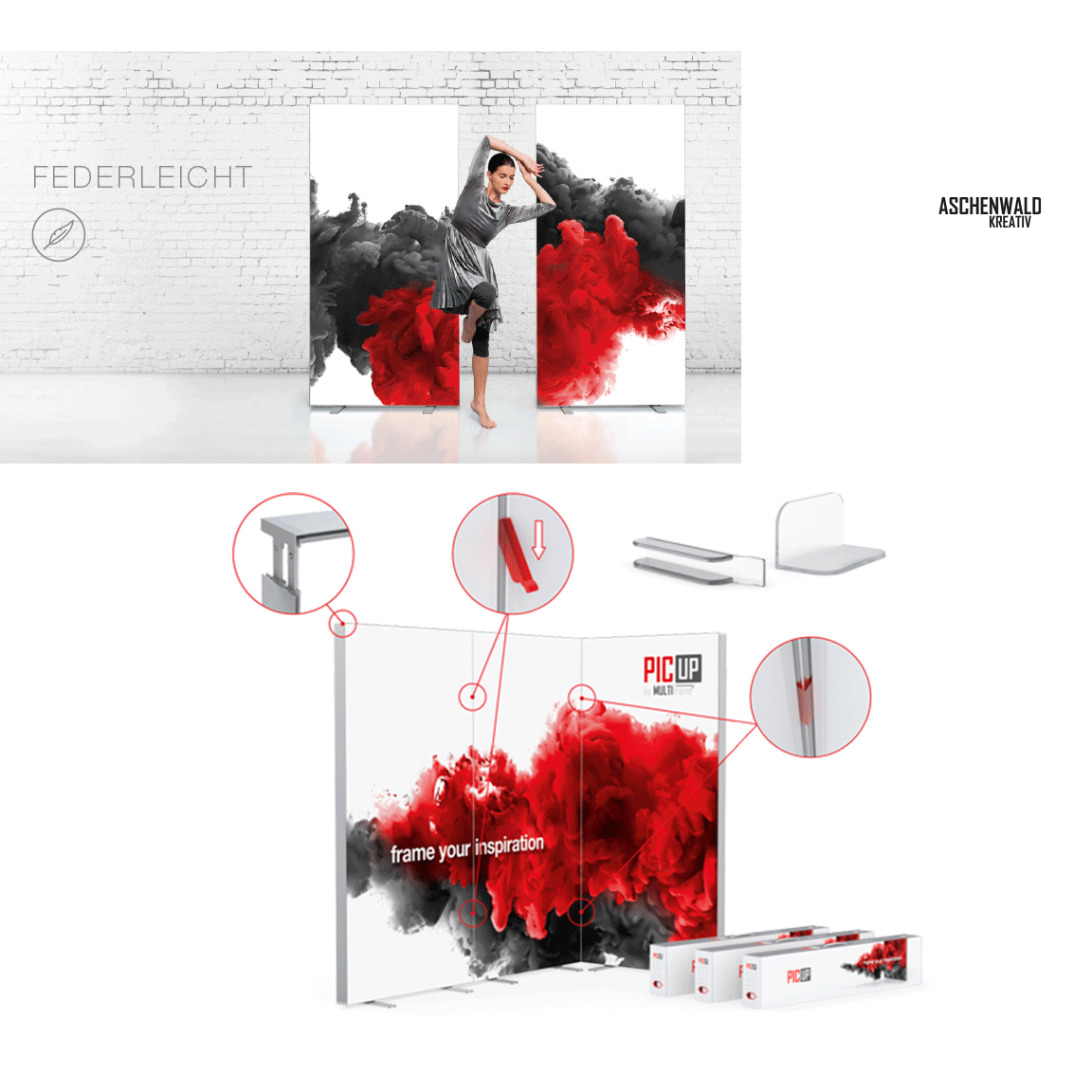 Mit multi frame PICUP setzen Sie Ihre Marke mit einem revolutionären Display-System höchster Qualität in Szene.